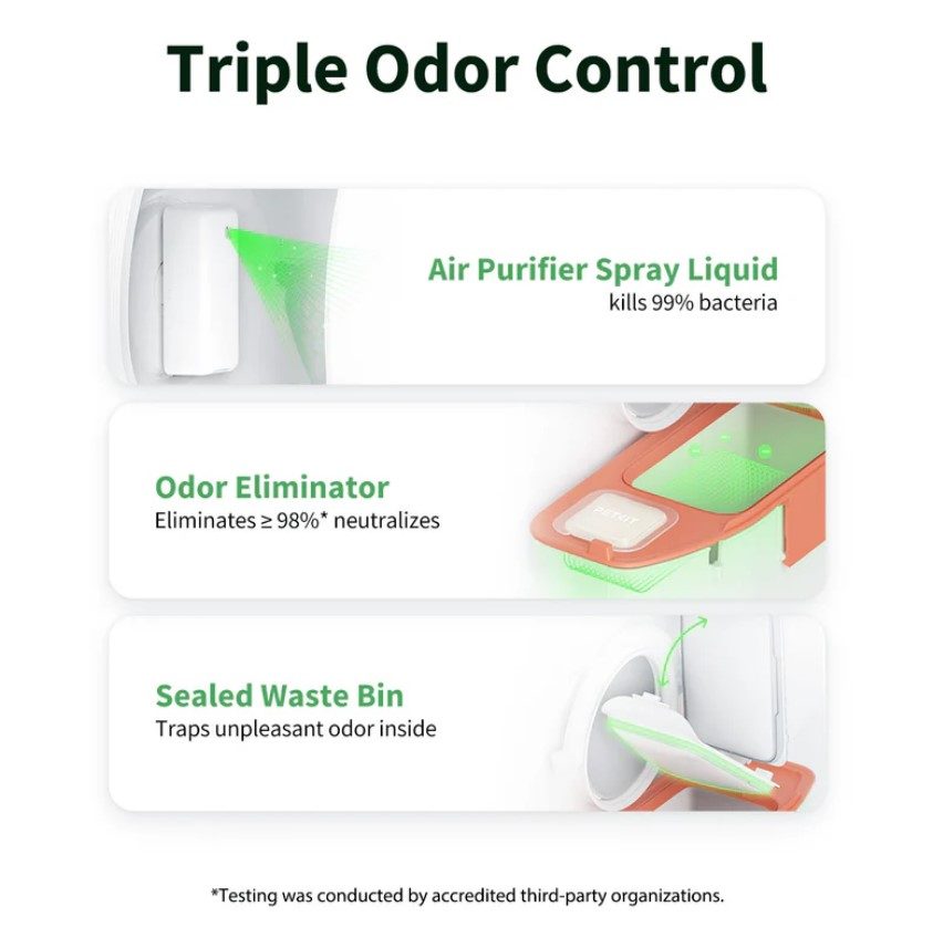 Otthonod mindig tökéletesen tiszta és illatos lesz a hármas szagszabályozásnak köszönhetően: légfrissítő spray, szagsemlegesítő és tökéletesen zárt szeméttároló révén. A szorosan zárt hulladéktároló nem engedi kiszabadulni a legkisebb szagot sem. A hulladék egy mosható, légmentesen zárt tartályba kerül, amely megakadályozza a kellemetlen szagok kialakulását. A toalett hengerén belül elhelyezett nedvszívó betét akár 2 liter folyadékot is képes felszívni, így a toalett mindig tiszta és száraz marad. Nem kell aggódnod a szivárgás miatt akkor sem, ha cicád szereti a toalett szélén végezni a dolgát.