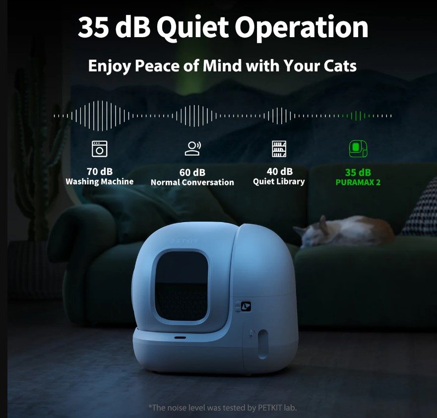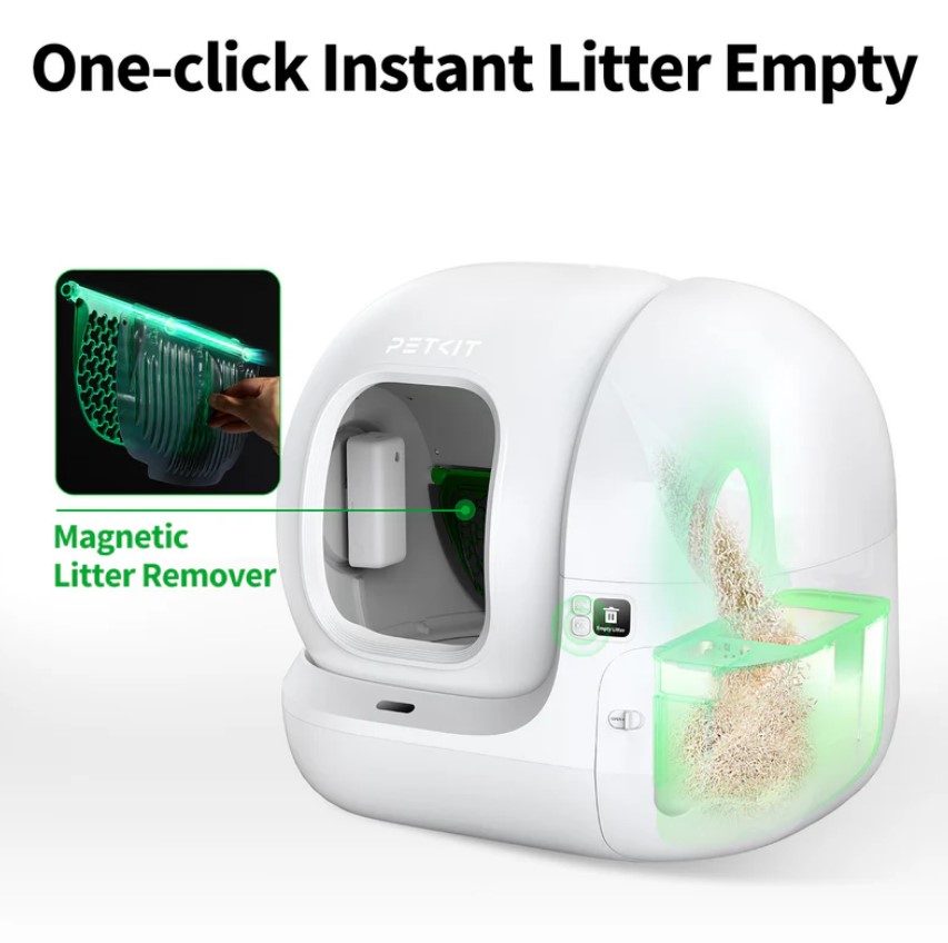 Fedezd fel a forradalmi, okos PURAMAX 2 macskatoalettet, amely kényelmet és tisztaságot hoz a többmacskás otthonokba! A tágas, 76 literes belső térnek és az alacsony peremű, könnyű bejáratnak köszönhetően ideális minden méretű és súlyú macska számára. A toalett 3 különböző tisztítási üzemmóddal rendelkezik, és kézzel vagy az ingyenes PETKIT mobilalkalmazáson keresztül is vezérelhető. Az alkalmazással beállíthatod a készüléket időzített vagy automatikus tisztítási módra, és a PURAMAX csendesen, automatikusan eltávolítja a hulladékot, amint a macska elhagyja a toalettet. Az alkalmazáson keresztül információt kapsz a toalett használatának gyakoriságáról, valamint a macskád testsúlyának változásairól is. A PURAMAX 2 tökéletes megoldás, hogy gondtalanul gondoskodhass cicatársaidról.