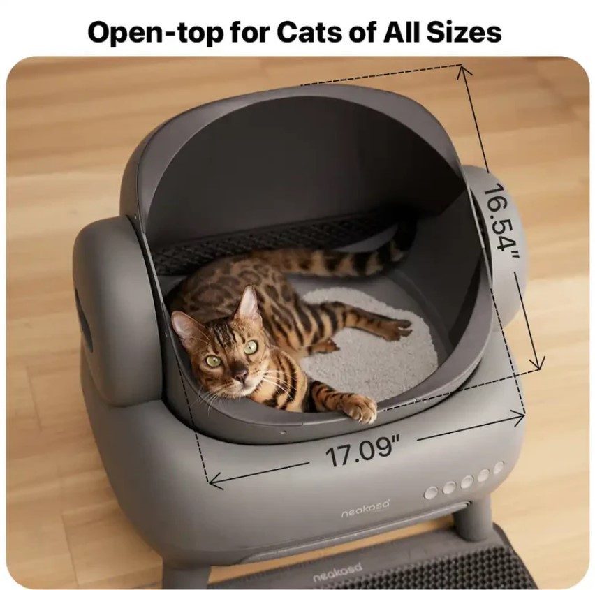 A Neakasa M1 WC egyedi nyitott dizájnja kényelmes be- és kijárást biztosít, miközben csökkenti a beszorulás kockázatát az automatikus tisztítás során. Házikedvence szabadon használhatja a WC-t, Ön pedig biztos lehet benne, hogy biztonságban van. A WC zökkenőmentes, természetes átmenetet kínál a macskáknak, megkönnyítve az új környezethez való alkalmazkodást – a legtöbb macska egy héten belül megszokja.