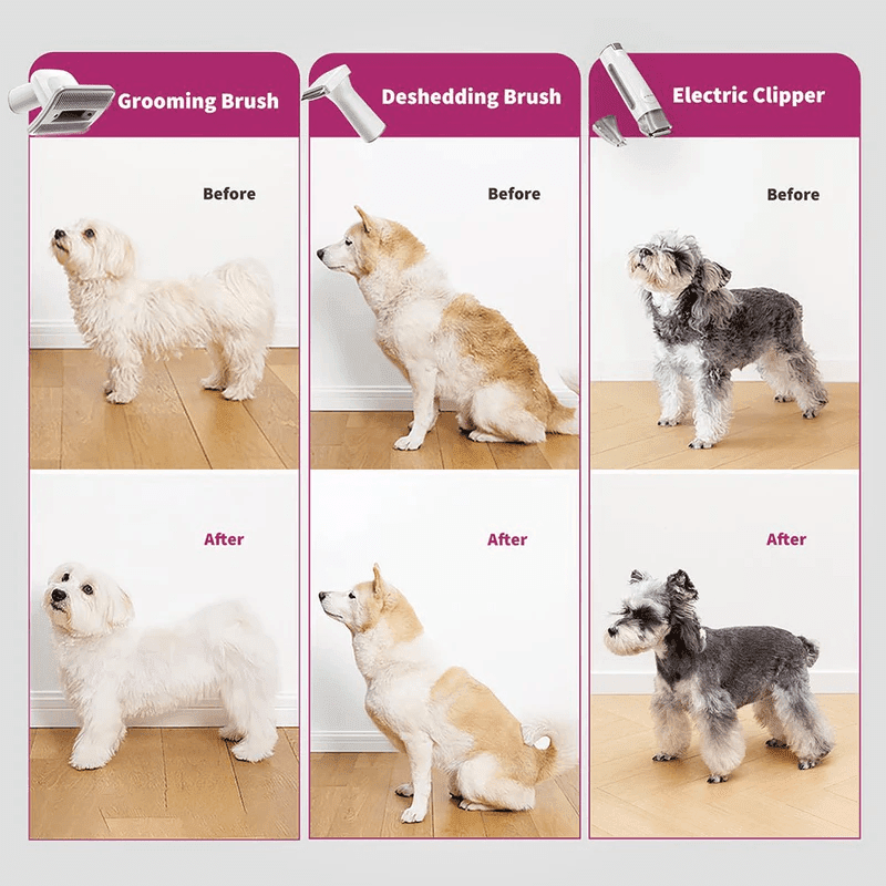 A Petkit AirClipper állatápoló készlet innovatív megoldás minden olyan háztartás számára, ahol szőrös barátok élnek. Ez a készlet nem csak a nyírást és a kefélést teszi lehetővé, hanem a szőrt, a szőrt és az allergéneket automatikusan egy könnyen tisztítható műanyag tartályba porszívózza. Nincs többé rendetlen fésülködés! A készlet elektromos nyírógépet, mancsvágót, szőrkefét, nyírófésűt és porszívót tartalmaz.